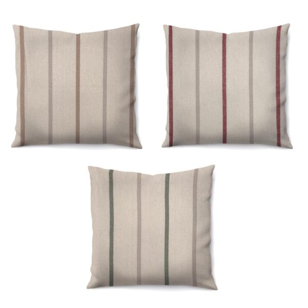 Capas de almofada listradas, confeccionadas em tecido algodão na cor neutro com listra em cores atuais e discretas, sem perder o charme.