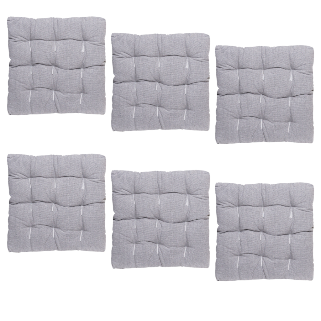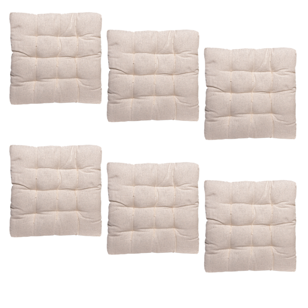 Kit contendo 6 almofadas assento de cadeira futon, confeccionada em tecido rustico.