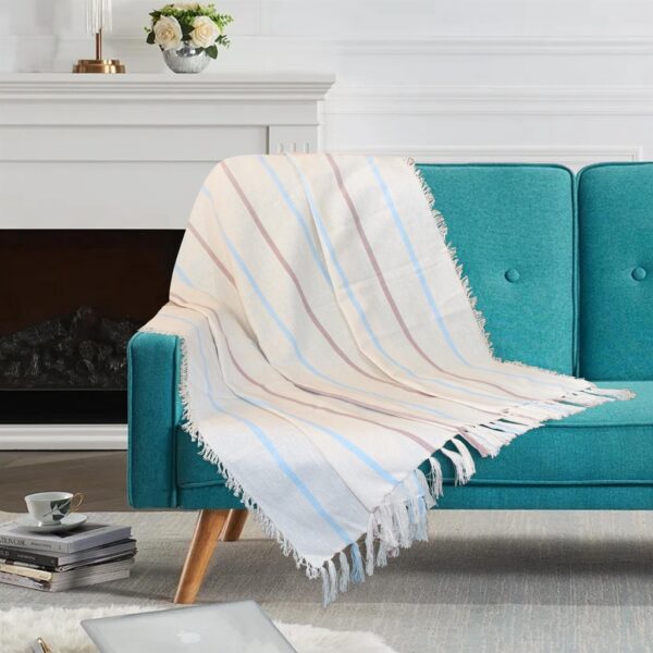 Manta Para Sofá Xale 100% Algodão Romantic Listras Tamanhos Variados