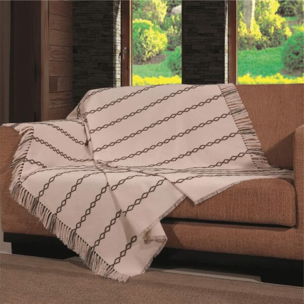 Manta Romana 1,40m x 1,40m Algodão para Sofá, Tabaco